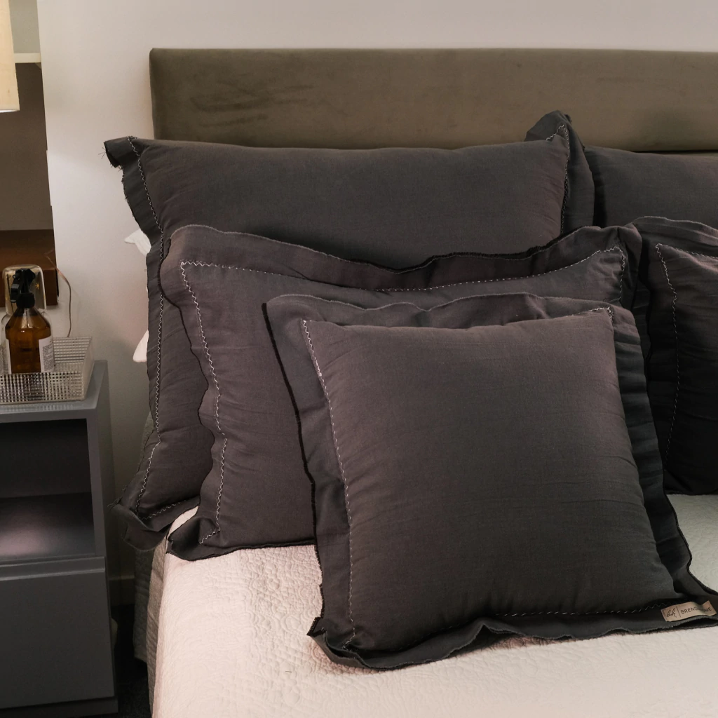 Almohadon confeccionado en tusor de algodón con poliéster con guarda festoneada.