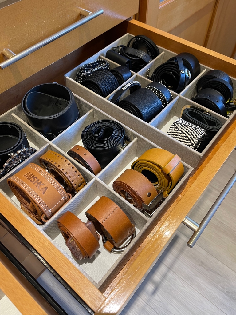 Viene con 6 divisiones para colocar uno por división. De esta forma podrás ver todos al mismo tiempo y no se enredarán entre sí.
