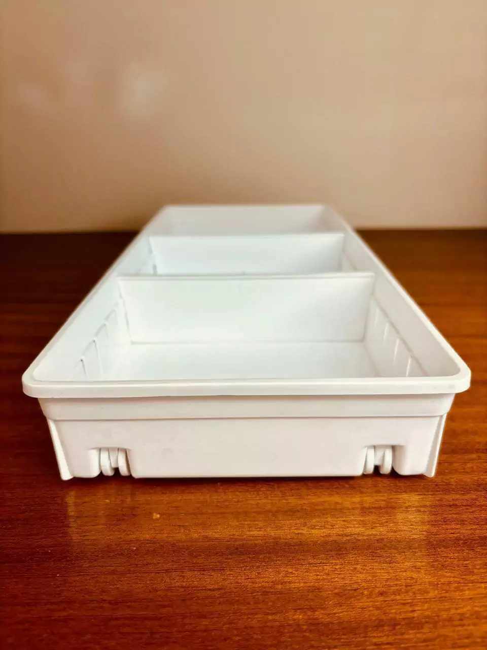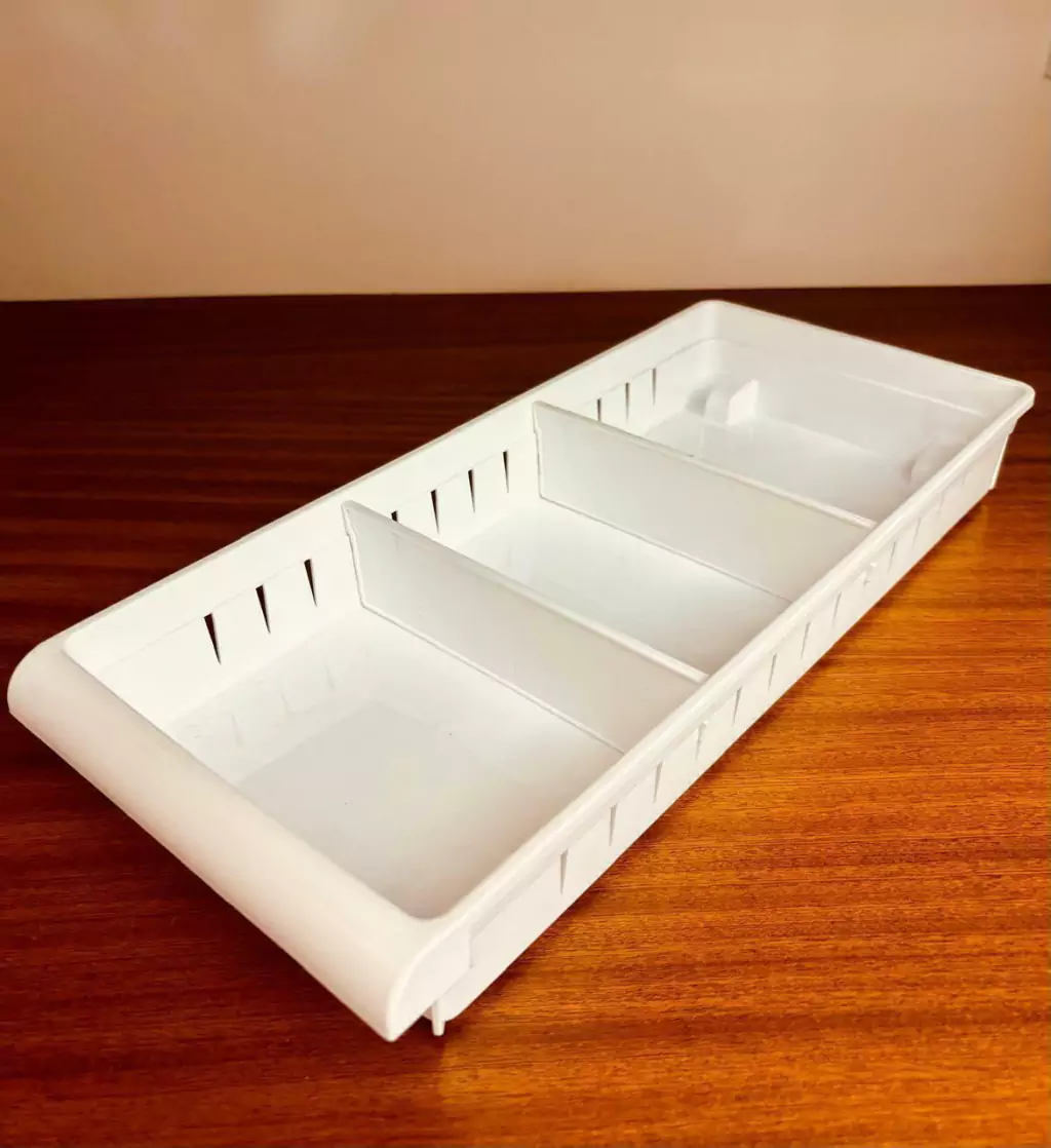 Contenedor con dos divisiones (removibles) para cajones de cubiertos y utensilios. También es muy útil para organizar la ropa interior en los cajones del placar. Encontra la línea Canadá en sus diferentes versiones.