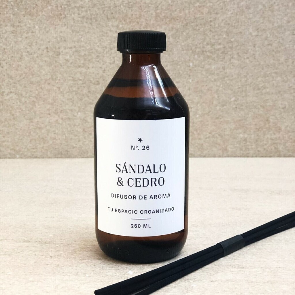 Difusor en frasco de vidrio para aromatizar todos tus ambientes aroma Sándalo y Cedro.