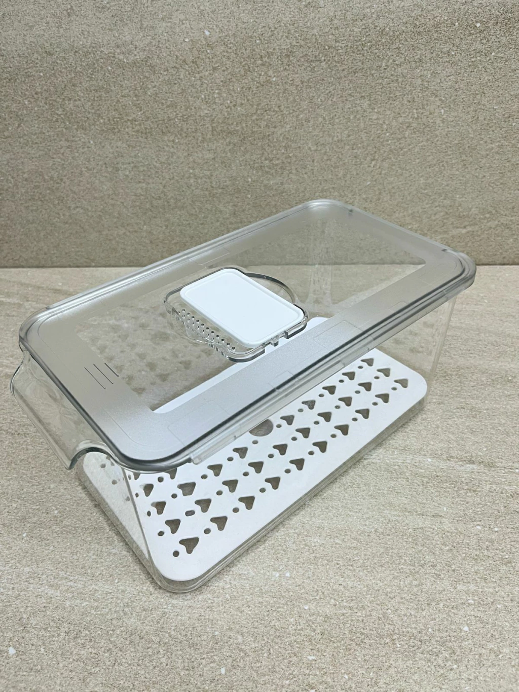 Organizador para organizar heladera, con tapa, rejilla y manija para un práctico uso.