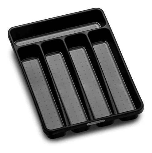 Organizador de cajones pequeño para cubiertos de 5 compartimentos con esquinas redondeadas para una mejor limpieza. Interior revestido en silicona y tacos antideslizantes en su base para mantener todo en su lugar.
