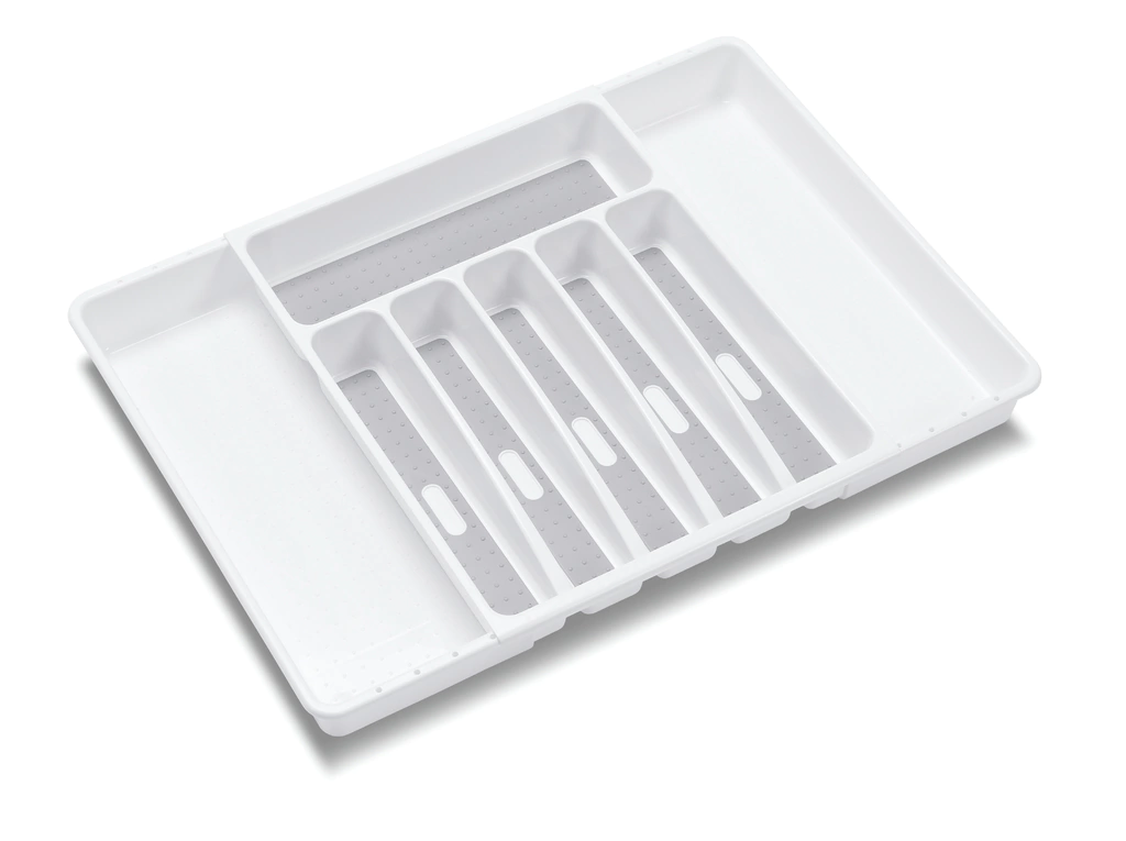 Incluye 6 divisiones para cubiertos y utensilios más 2 partes que podes extender al tamaño que desees