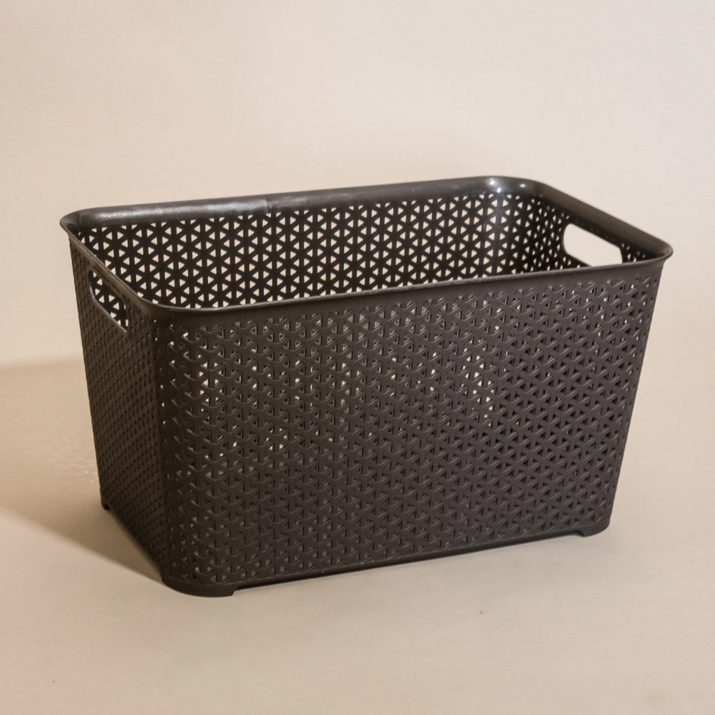 Contenedor plástico símil rattan para organizar el vestidor. Ideal para prendas grandes o que ocupen mucho volumen, sábanas, juegos de toallas, etc.