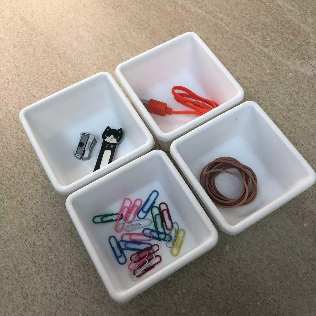 Contenedor plástico blanco para organizar cajones del escritorio (clips, bandas elásticas, broches, ganchitos, etc). Encontralo también en su versión larga y angosta (Contenedor liso angosto) y grande (Contenedor liso grande).