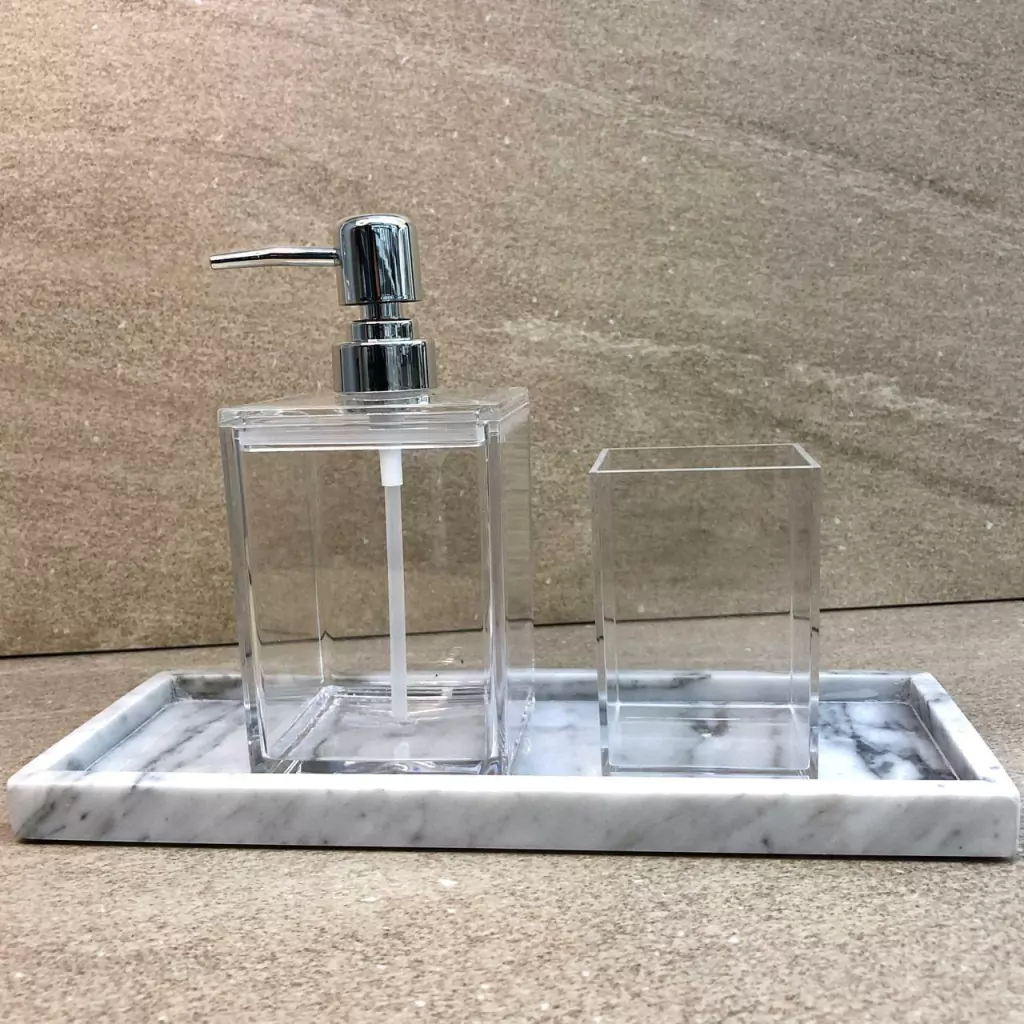 *Foto ilustrativa junto al Dispenser Cubo chico y Bandeja rectangular de mármol Blanca.